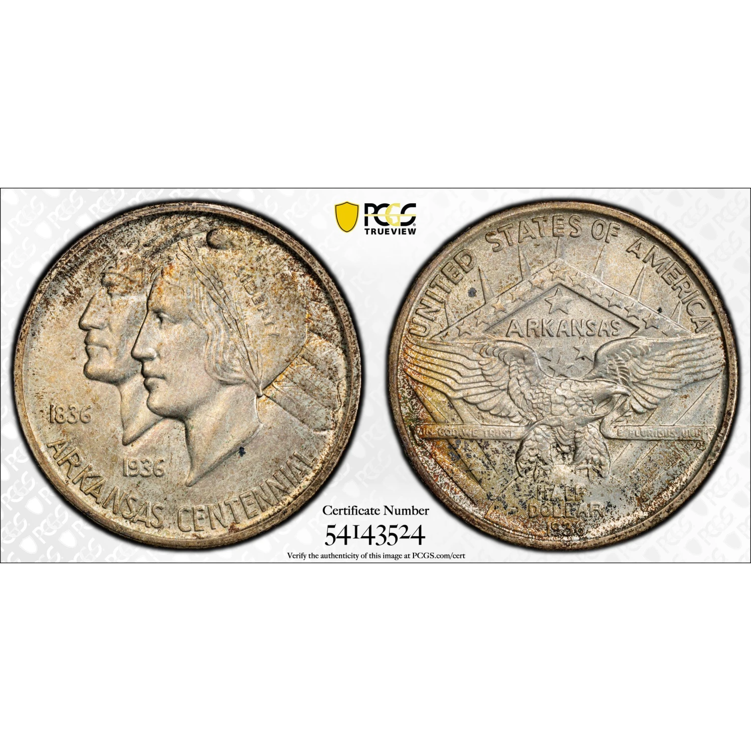 1936-S Classic Commemorative Arkansas Centennial PCGS MS-67 Arkansas