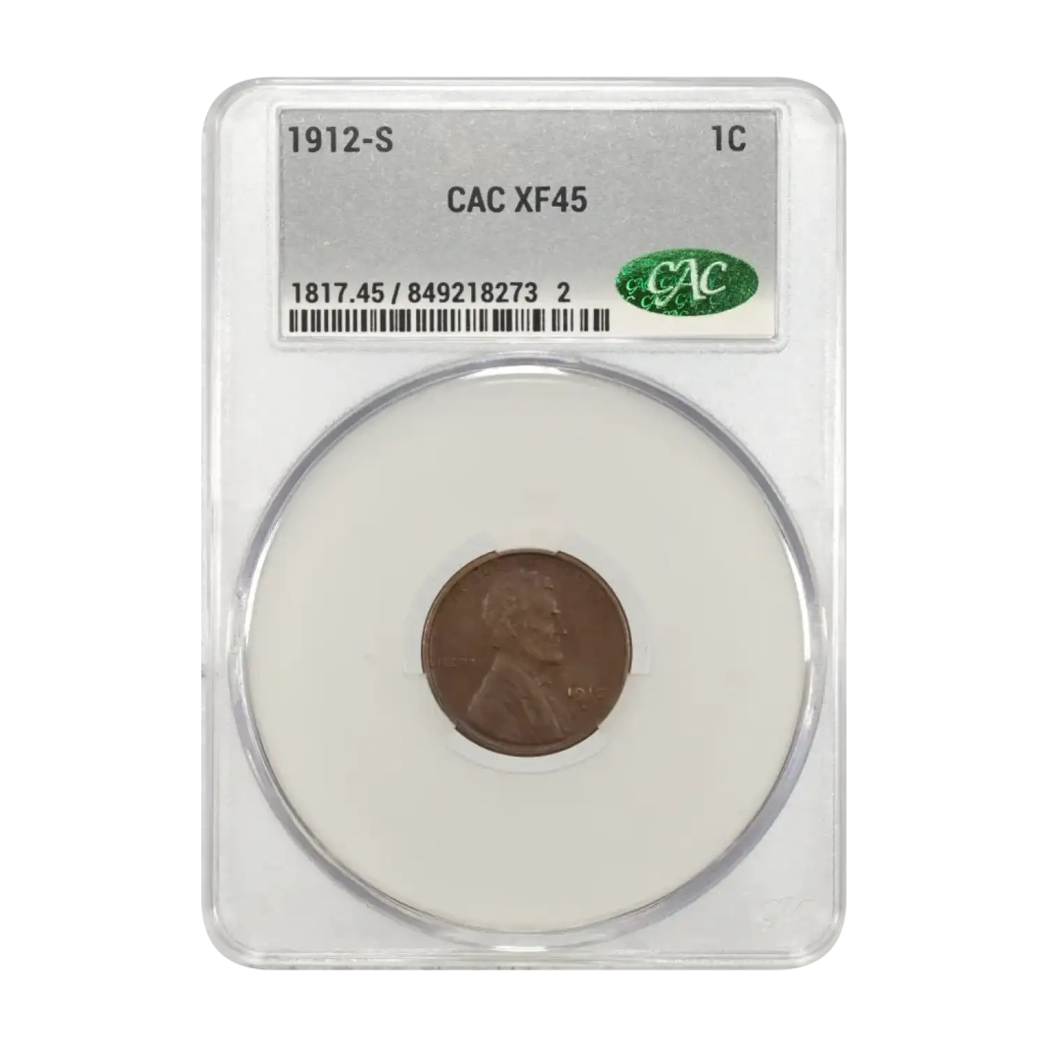 1912-S Small Cents Lincoln, Wheat Ears Reverse CACG XF 45 BN CAC