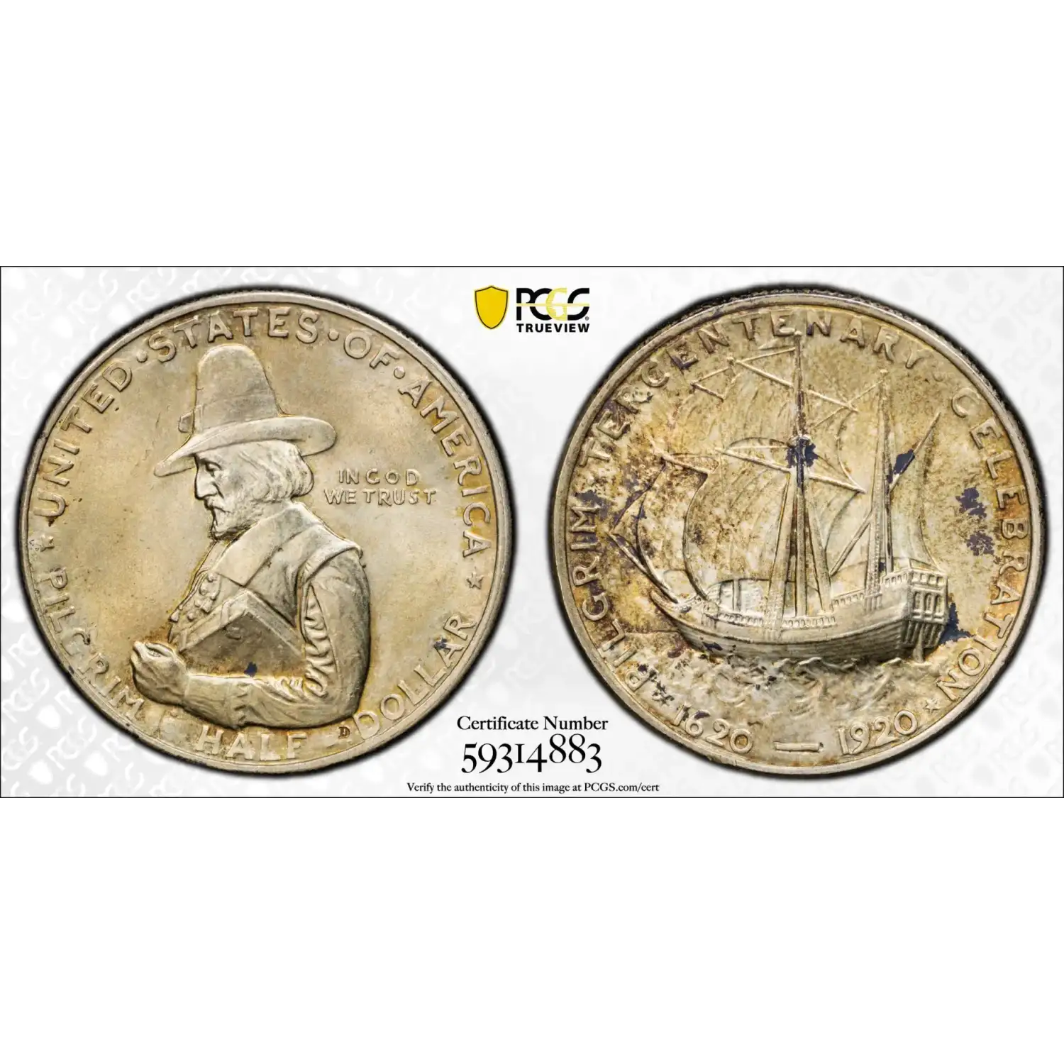 1920 Classic Commemorative Pilgrim Tercentenary PCGS MS-65 Pilgrim
